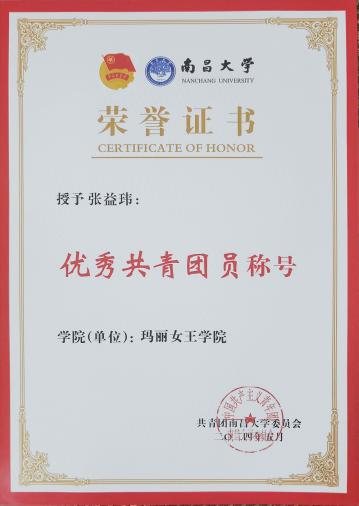 积极参与党组织各类活动,入选2025年“香樟领航”计划学生党员骨干培训;在“青春心向党·少年著华章”推文创作比赛中获奖,并获评“优秀共青团员”称号。始终以党员标准严格要求自己,在学习生活中发挥先锋模范带头作用。