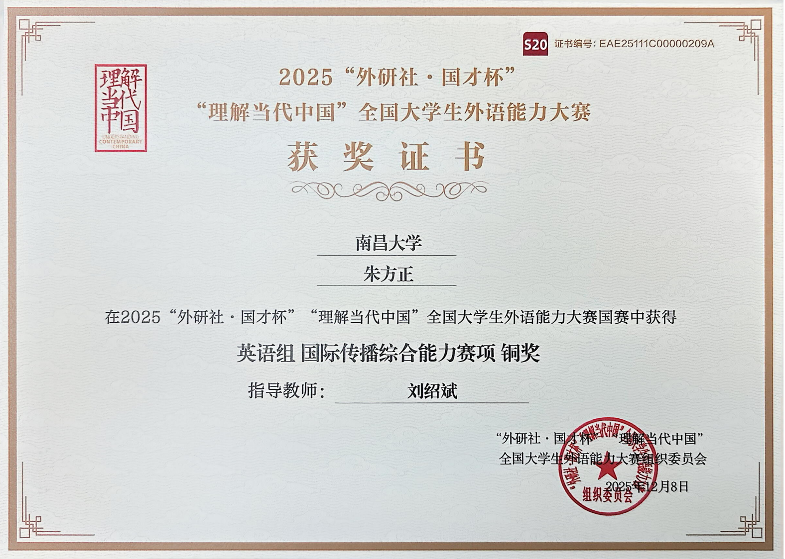 从志愿服务的暖心瞬间到班级建设的踏实付出,从学术科研的不懈探索到跨文化交流的自信展现,朱方正用脚踏实地的行动,诠释着青年党员的责任与担当,在每一件小事中坚守初心、扛起责任。未来,他将继续带着这份仁心与热忱,在学习中锤炼本领,在实践中增长才干,用更扎实的行动,书写新时代青年无愧于时代的青春篇章。