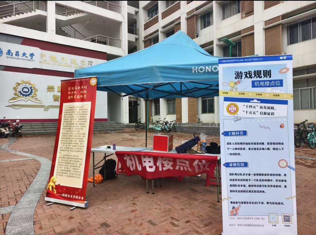 在南昌大学“寻旗记”活动中,他担任机电楼点位负责人。为了保障活动顺利开展,他提前到场反复确认场地布置和人员分工,活动当天更是忙前忙后,组织打卡挑战、及时协调突发问题,用有条不紊的安排让点位运转得顺畅有序,也让参与活动的师生感受到了满满的诚意。