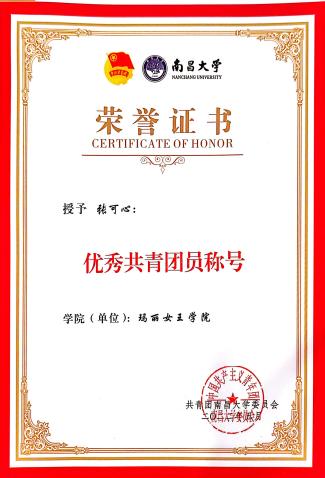 张可心,中共党员,南昌大学玛丽女王学院215班学生,现任学院辅导员助理。她始终以党员标准严格要求自己,把“为人民服务”的初心写在志愿一线,把“医者仁心”的使命融入专业学习,用实际行动诠释新时代青年党员的责任与担当。48e7d6a5eca84591919fb0d429ae1408.jpg